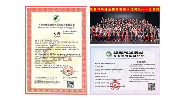 凱瑞蟲控擁有質量管理體系認證、環(huán)境管理體系認證、國家有害生物資質等各項證書